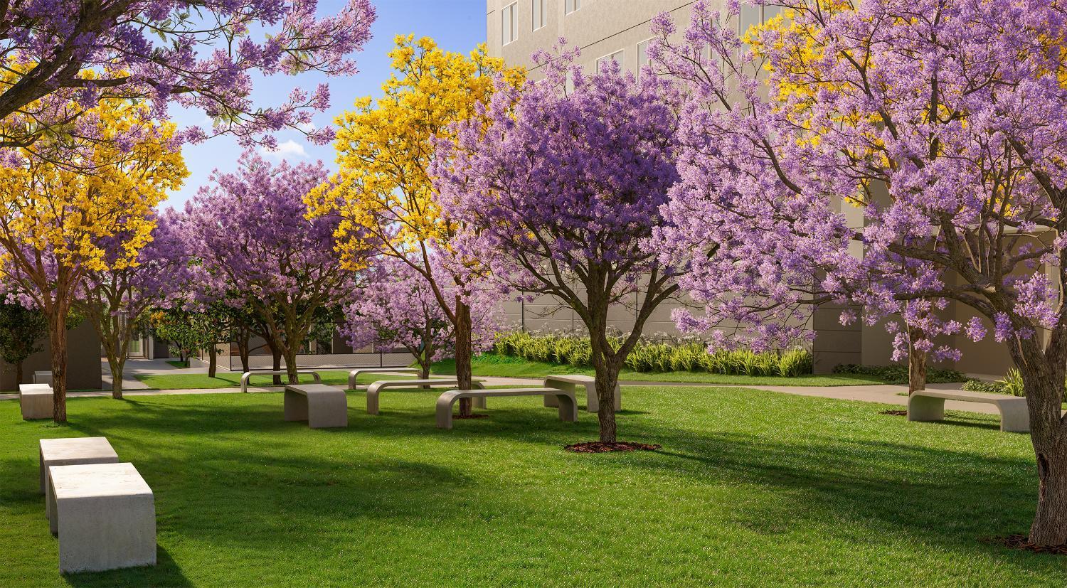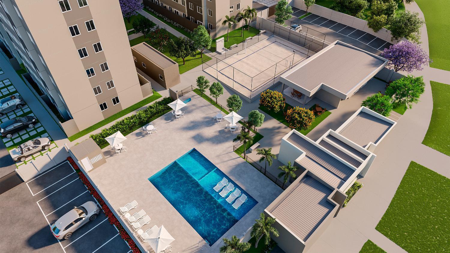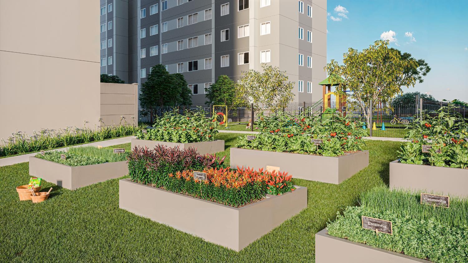 O projeto oferece unidades de 2 dormitórios, opções Garden e apartamentos adaptáveis PCD, com infraestrutura completa de lazer, comodidades e segurança.