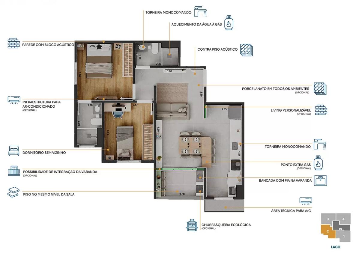 O empreendimento entrega padrão de acabamento com foco em conforto e funcionalidade:
