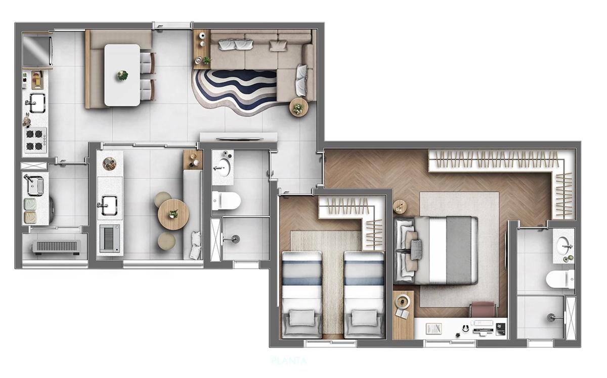 Apartamentos de 02 dormitórios - 66,66 m² (100 unidades)